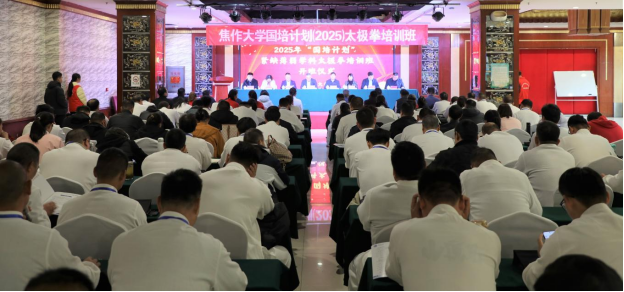 10月20日上午,我校承办的河南省2025年“国培计划”太极拳项目中小学第一期培训班开班仪式隆重举行。焦作大学副校长、校体育运动委员会主任林邓伟教授,焦作大学党委委员、副校长、国培计划太极拳项目首席专家王友军教授,清华大学长聘教授、博士生导师乔凤杰,以及焦作大学人事处、对外合作处、太极武术学院等院部负责人和来自河南省的100名中小学教师共同参加开班仪式。仪式由太极武术学院副院长王勇主持。